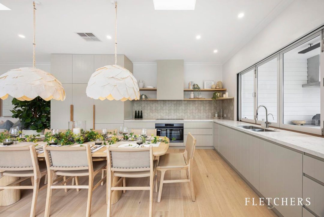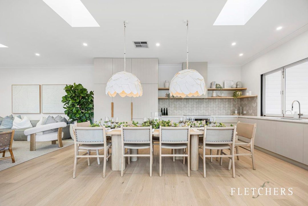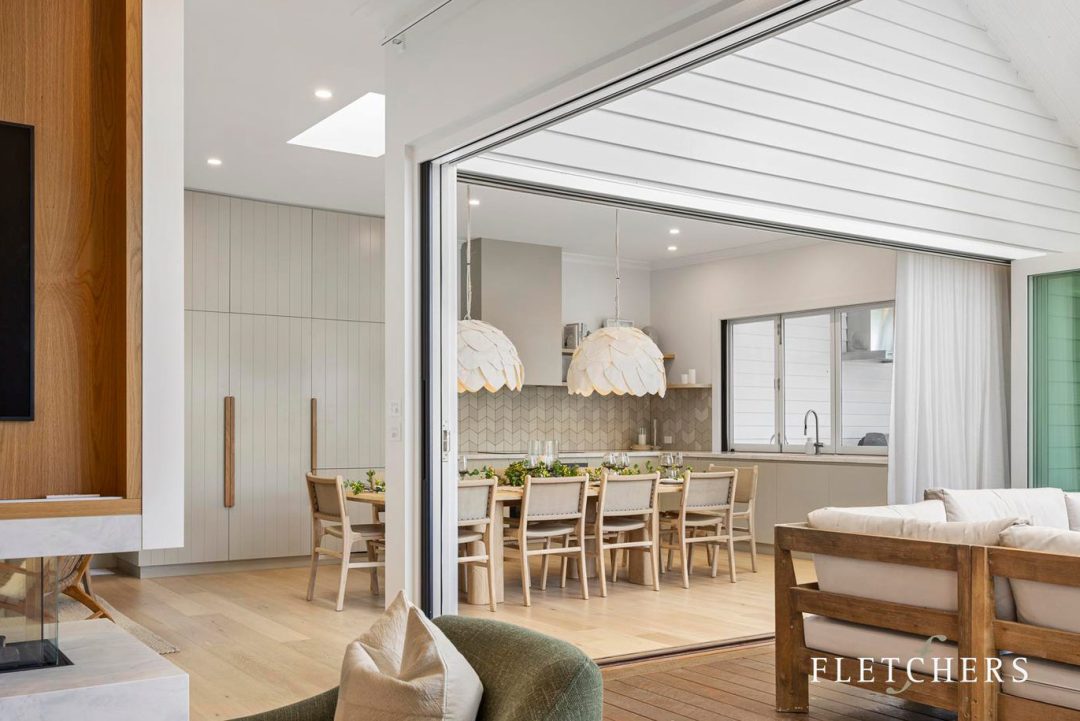 Open-plan living, dining, & kitchen, corner-stacker sliders to alfresco