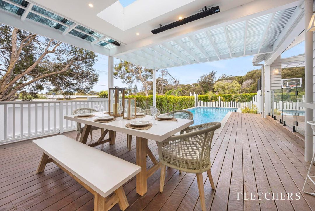 Outside, your private resort awaits, whether you’re relaxing with a local wine, having friends over for a barbeque, or unwinding in the sparkling waters of the inground pool and spa. Everything about this space has been designed for easy entertaining, from the built-in outdoor kitchen to the ceiling heaters and fans for year-round comfort. The fully fenced yard is meticulously landscaped, with a sports court for the kids. With Blairgowrie Village, beaches, and Rye just minutes away, this is peninsula living at its absolute finest.