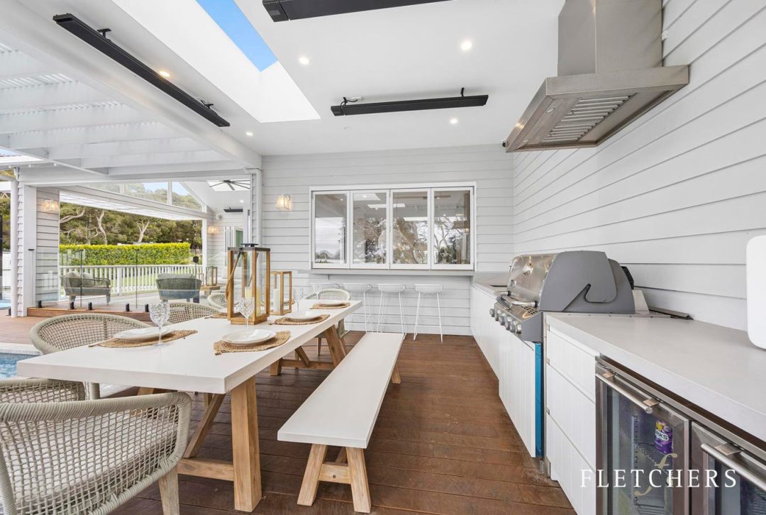 Resort-style alfresco with outdoor kitchen, BBQ, heaters & fans